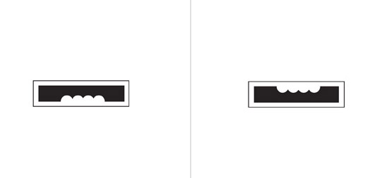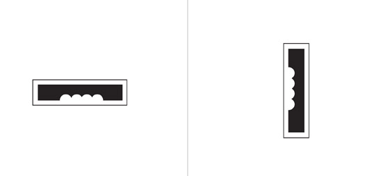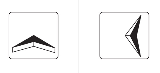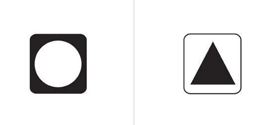 PROBLEM SOLVING. As I began thinking of this problem, I immediately realized the need of a shape-difference recognition. Although the end user will be literally arm’s distance when interacting with the mark, I feel each, the push, and the pull, need to be recognized from afar with a sense of immediacy. They require a bold difference, whether in shape, orientation or symbolism, yet still need to be congruent and display as a couple, even though they are separated. For example, a vertical rectangle and horizontal rectangle — much different, but still similar with the difference and similarity easily recognizable at a glance.
