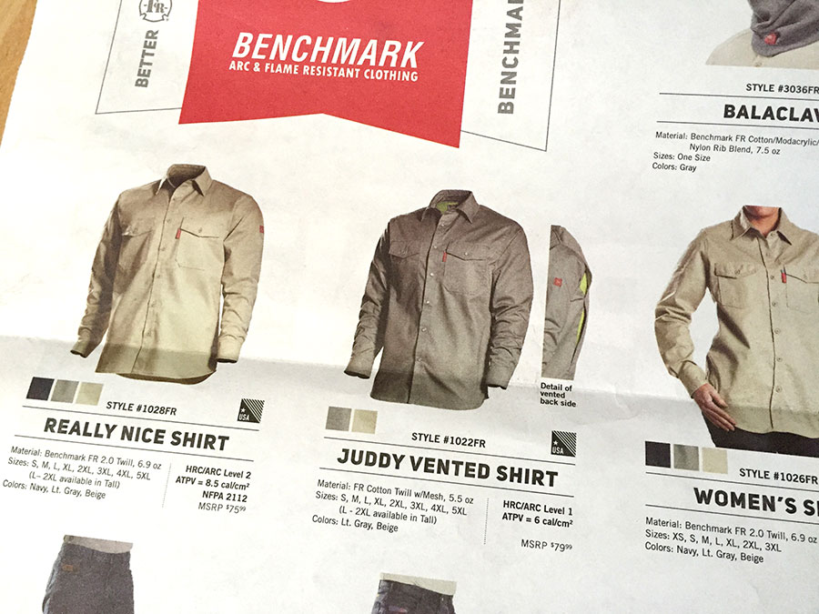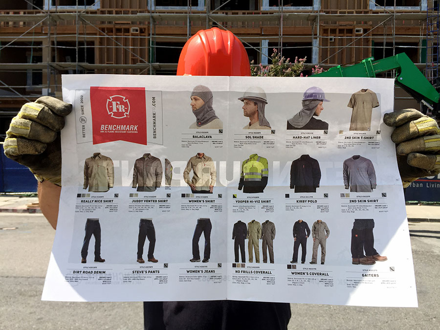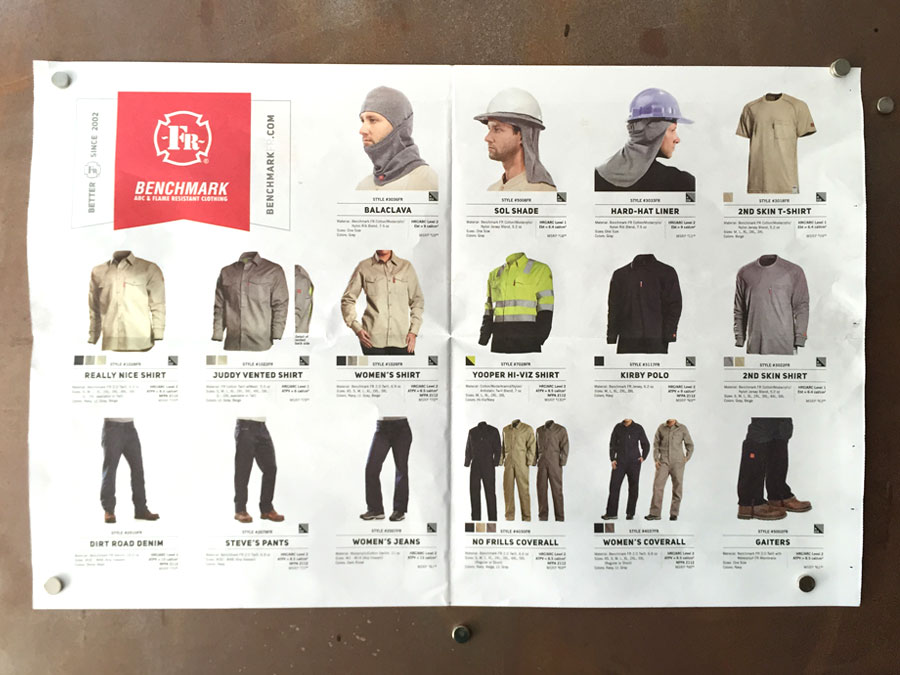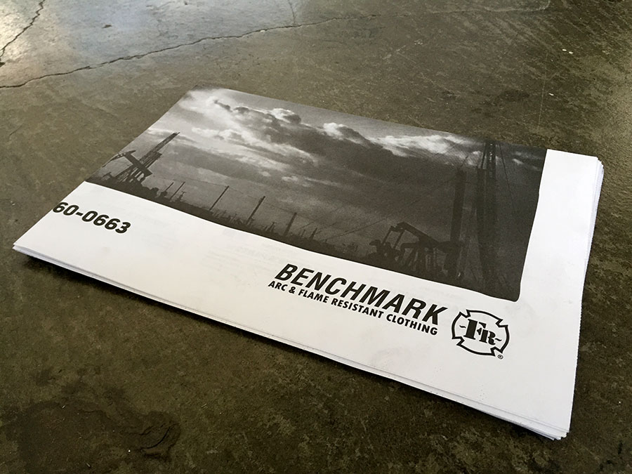 we recently met with Erin and John of Benchmark FR Clothing and updated their latest broadsheet, which is a fashionable way to share their current fire resistant clothing line rather than printing a hefty catalog. it’s a large newsprint fold-out that can be hung on the wall as well.